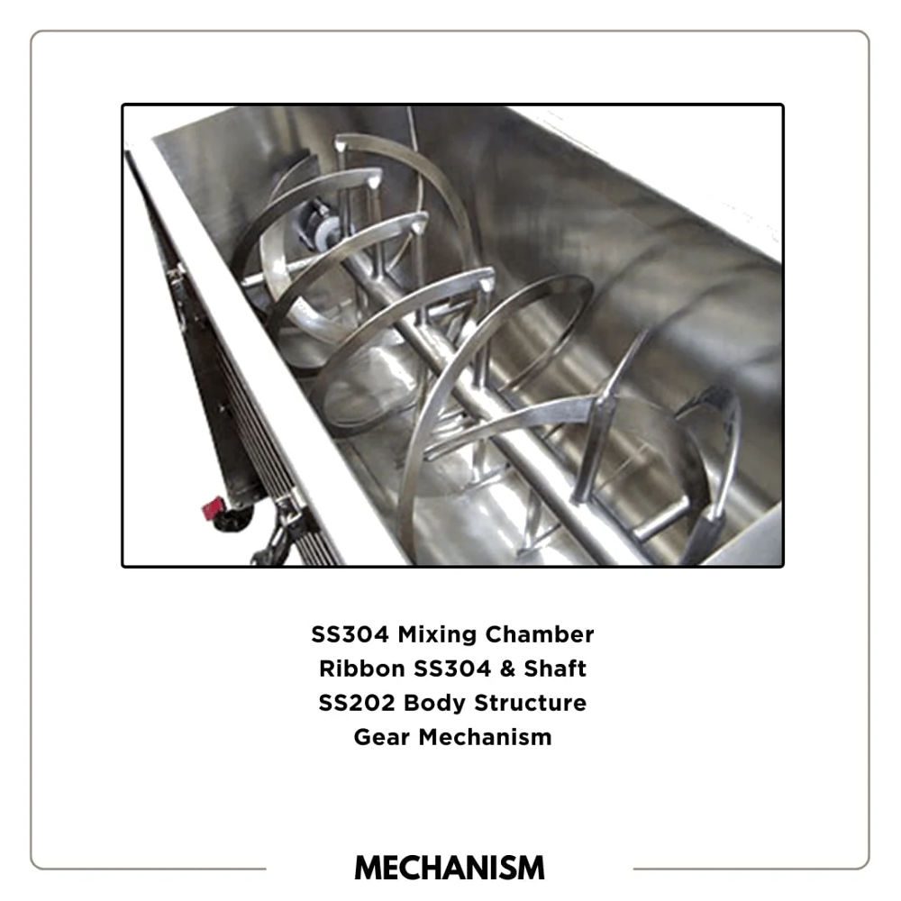 The machine’s ribbon rotation speed is set at an optimal 35 RPM, ensuring a consistent and uniform mix without compromising the integrity of the spices. This feature is particularly crucial for maintaining the delicate balance of flavors that are essential in spice blends. Weighing in at 90 kg, the Masala Mixing Machine boasts a solid construction, lending stability and durability to its operation.